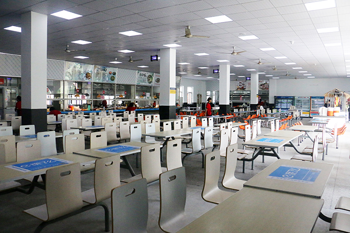 装修一新的学校食堂整洁明亮,一楼主营大众饭菜🤲🏻,包含教职窗口、韩国料理、特色面食、快餐小吃等;二楼为美食广场,包含南北菜系、特色炒菜、自助餐🕺🏼、麻辣烫等👳🏽,各具特色的八方美食,汇聚于此。
