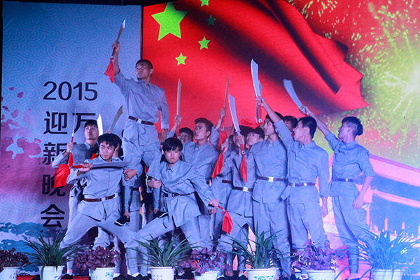 今年是抗战胜利70周年👩🦼,为铭记历史🐾,珍爱和平,迎新晚会以《大刀进行曲》🕵️♀️、《弹起我心爱的土琵琶》、《我的祖国》三首情景表演唱开篇,在和平的年代🦓,聆听历史的回声🧙🏽;《美丽中国》🚣🏿♀️、《祖国之恋》🧏🏼♀️、《和谐圆舞曲》、《我和我的祖国》等歌曲热情🏂🏽、奔放,充满了对祖国深深的眷恋与感激之情👸🏻,也表现出了当代大学生积极践行社会主义核心价值观的风采;军训教官带来的男声独唱《半月小夜曲》以及歌曲合唱《强军战歌》展现了当代军人多才多艺*️⃣、敢于担当的美好形象⌨️;民乐合奏《神话》美轮美奂🦹,琵琶👩✈️、笛子、古筝三种民族乐器交相辉映🦂👷🏽♀️,意蕴悠长,展现了我院学子扎实的音乐功底🏢;由安徽迈克杰克逊舞蹈的领军人物、我院音乐表演系2005届优秀毕业生杜德强与我院音乐表演系2014级许海峰联袂出演的迈克杰克逊模仿秀,受到现场观众的热烈欢迎;女生表演唱《沂蒙山小调》风格独特,带有强烈的地域特色🧑🏻🏭;男声独唱《You Raise Me Up》经典再现🧑🔬,令人回味🦞;殿堂级摇滚乐队BEYOND的《光辉岁月》在音乐系2015级同学的表演下魅力依旧;由我院音乐系2005届毕业生、现任汉威文化传播有限公司总经理王磊磊先生和音乐系2014级姚恩赐同学演唱的《绒花》再现了经典电影《小花》的场景,质朴的演唱风格受到观众的欢迎👦🏻🤷🏻♀️;由著名男高音歌唱家、声乐教授🦻、国家一级演员🈴、安徽声乐专业委员会会长、万博学院客座教授邝实先生和他的得意弟子牛克重、吴丹带来的经典歌曲《追寻》,高水准的演唱带来美的享受,令人回味无穷;舞蹈《中国梦》气势恢宏🉑,充满青春的节奏与律动➞,晚会也由此进入尾声🕵🏻。