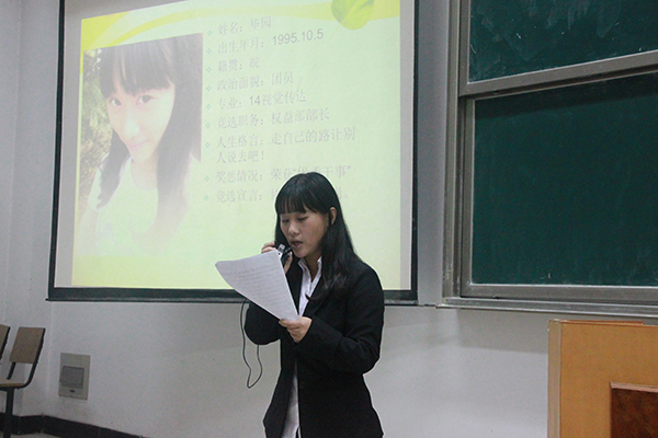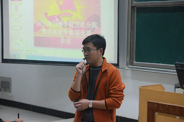 本次大会在激昂的团歌声中拉开序幕。由艺术分院团总支学生会主席沈启财对上一年度学生会的主要工作做了简要的回顾与总结,对未来学生会的工作充满希望。随后,主持人孙彪宣读了参与本次换届大会竞选的干事名单。经过激烈的竞聘演讲,在各部门部长和两位老师的监督下,公平、公正、公开的选出了下届主席团和各部门负责人。