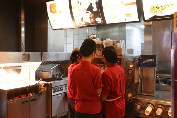 当天下午,我院副院长陈文达一行在安徽麦当劳人力资源部经理吴林女士的陪同下来到餐厅了解了“小麦苗”的实训情况🥗。