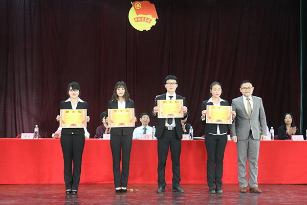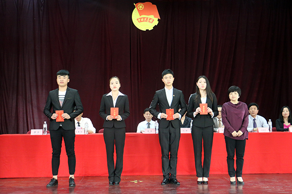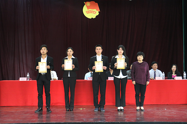 院党委副书记(j兼)、艺术分院副院长沈春雷为院级优秀团干代表颁发荣誉证书