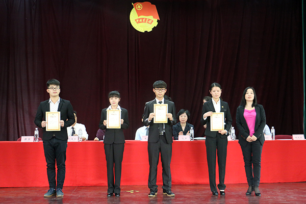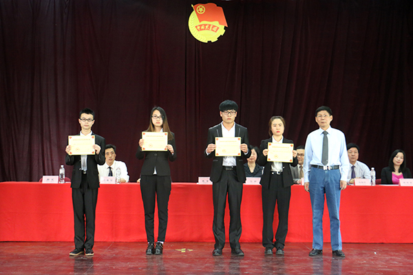 为院级五四红旗团支部代表颁发奖状