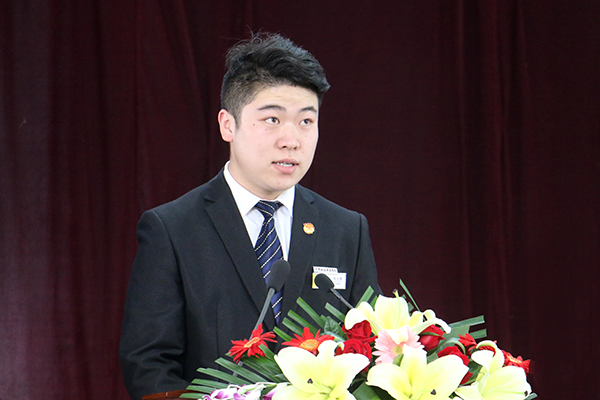 陈自豪代表院级优秀团干在大会上发言