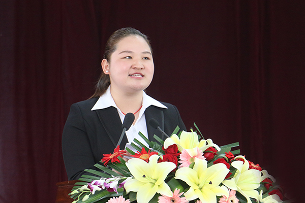 优秀奖学金获得者代表王杨慧同学在大会上发言