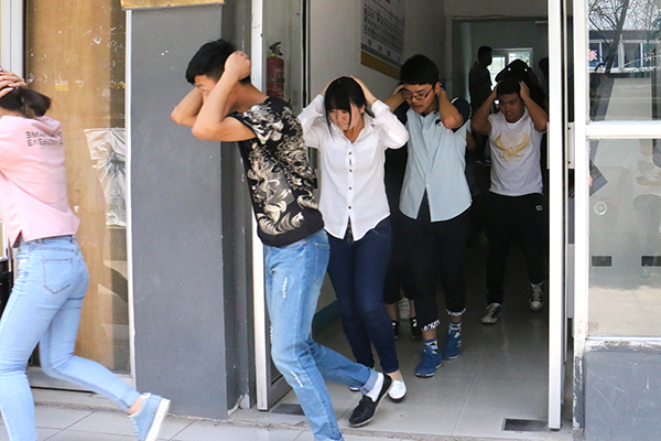 12时35分⇒,警报声想起,教室里的学生开始就近应急避震,双手抱头蹲在各自的课桌下👨🏼🦳,在相对牢固的地带躲避起来🫱🏼。随后,学生在学院老师的组织下,迅速👀、有序地撤离教室,疏散到较为空旷的运动场集合👮🏿。