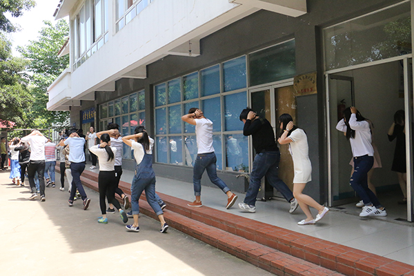 随着警报声响起,同学们迅速有序跑出教室,向运动场集结......5月12日中午,为纪念“5.12”汶川特大地震8周年,增强师生的安全防范意识👨🏿🦱,熟练掌握逃离灾难现场和简单自救的基本方法,我院团委开展了地震避险紧急逃生演练活动🙍🏼♀️。