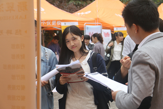 参加双选会的2017届毕业生积极通过宣传册💁🏿♀️、展架、海报、宣传单页等资料了解企业环境,并主动向招聘人员咨询职位信息📅,初步确定意向后便填写企业的报名表预约进一步的面试环节。偌大的招聘会现场,被用人单位和前来应聘的毕业生挤得满满当当,学院就业指导中心的工作人员也在现场维持现场秩序,为招聘企业和毕业生提供服务和支持。