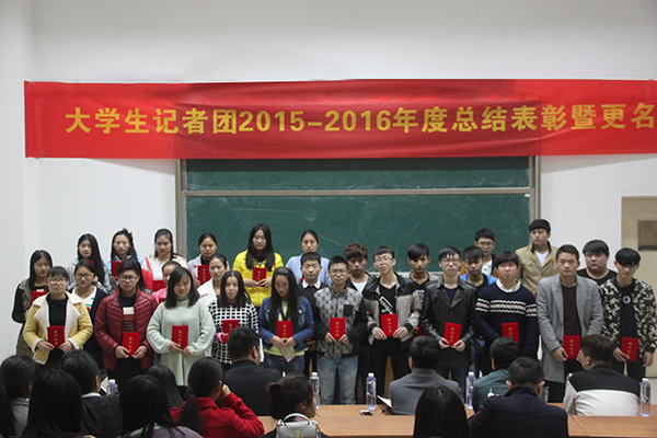 11月2日晚📟,我院大学生记者2015—2016年度大学生记者团总结表彰暨更名大会团在1201教室隆重举行🤦🏽,院宣传部部长🀄️🎴、继续教育部部长余得高,院宣传部老师汪启军,院、系学生会主席团☝️,以及社团联合会、校卫队、各学生会宣传部部长、各班级委员和全体大学生记者团成员等参加了此次大会🏌🏻♂️。