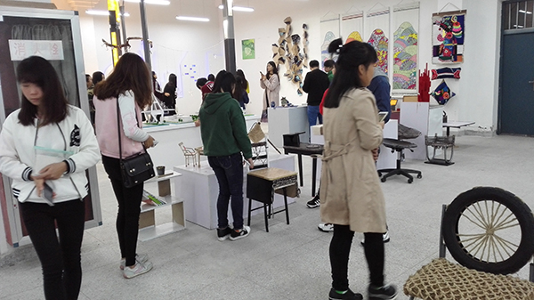 10月27日, 2015级室内设计班和2014级视觉班的师生却兴致盎然参观安徽工商职业学院艺术系,大家在艺术系展厅里欣赏沙发设计的解构与重构设计作品;织绣、染织类装饰设计、雕塑作品。同学们纷纷拍照留资料,看到各种废旧材料焕新的再设计,纷纷赞叹“今天没白来”,“回去做立体构成作业知道怎么办了”⬛️。
