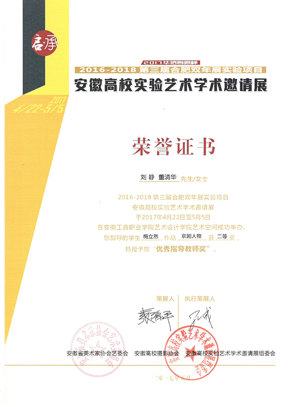 此次邀请展📤,艺术分院教师带领建筑室内设计专业、装潢艺术设计专业、多媒体设计与制作专业、广告设计与制作专业8名学生共提交9件作品,经过初选和复选最终获得二等奖奖项2个✉️、入围奖7个。由刘萍设计的《红色情怀》、梅立然设计《京剧人物》分别获实物装置构成类设计二等奖🧜🏿。方蓓的系列摄影作品《好时光》💆🏼♂️、汪梦圆的摄影作品《慈母手中线》《精工锻造》、王超凡的数字漫画设计作品《鲸鱼姬》、张丹玉设计的《生态环保装饰》、唐倩倩设计的《银色音乐符号》🍊、王玉娟设计的《中国结》分获摄影类、设计类🙇🏻♀️、装置构成类入围奖。指导教师刘静😇🛗、朱婉芬、董清华、关松涛在备赛期间给予学生大力指导🐛。