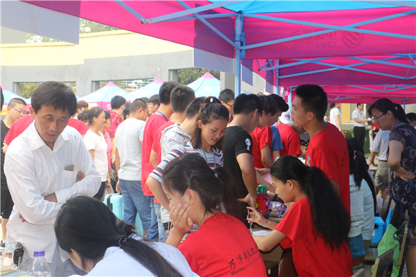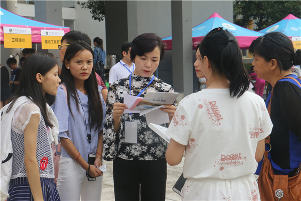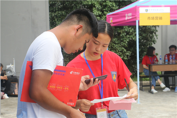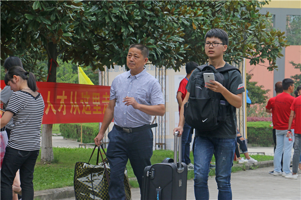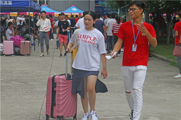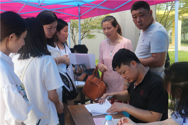 早上7点,迎新工作就进入了紧张而有序的状态,位于教学楼前广场的新生接待处,不时迎来一批批洋溢着青春笑容的2017级新生。在新生接待处,工作人员有条不紊地接待着前来报到的新生和家长,他们会心的微笑和关切的问候,让新生和家长倍感温暖。