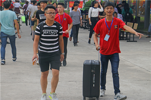 在报到当天🤏🏻,全程都有志愿者引导,帮助新生搬运行李,办理入学手续,沿途讲解校园环境,欢声笑语中新生的陌生感一扫而空。志愿者不仅是迎新工作的一支重要力量🔢,俨然已经成为博园中一道靓丽的风景线🍭🦵🏽。
