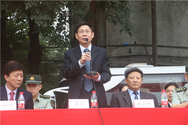 王宜书记宣布彩神2017级新生军训汇报表演暨总结表彰大会正式开始!