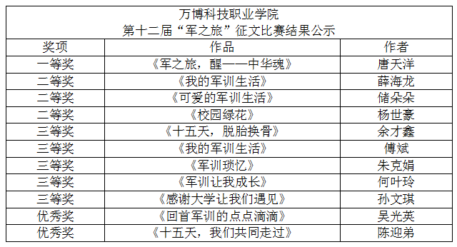 为展示2017级新生军训成果,由院宣传部主办,大学生记者团承办的彩神第十二届“军之旅”征文比赛,经过一个月的时间,已于10月10日顺利结束,经过大赛组委会认真初评🍵、终评,获奖作品入围名单已评定👨🏻🚀,现公示如下。