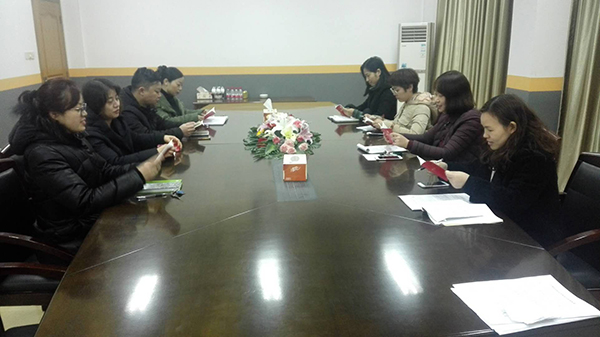 12月15日上午↗️,管理党支部在行政楼会议室召开支部会议,学习新党章,解读十九大报告和讨论预备党员转正工作。全体支部党员参加会议👳♀️,会议由支部书记王媛媛主持。