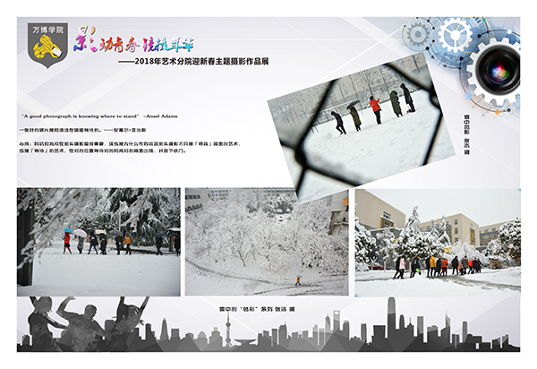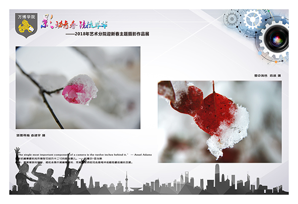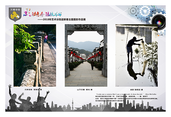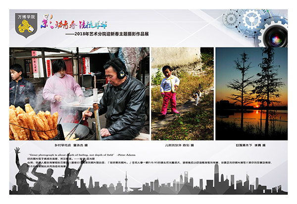 为迎接2018年新春的到来,见证和记录我院师生对艺术教育发展与实践应用的水平,同时也为了激励更多的学生通过此次主题摄影作品展能够真切体会到青春的印记🐣,引导其关注😌🔀、摄取学习和生活中的美🙍🏽🧏🏼♀️,1月12日—20日🪲🚶🏻♀️,艺术分院在学院图书馆一楼展厅举办了“影动青春 镜摄年华——2018年迎新春主题摄影作品展”。
