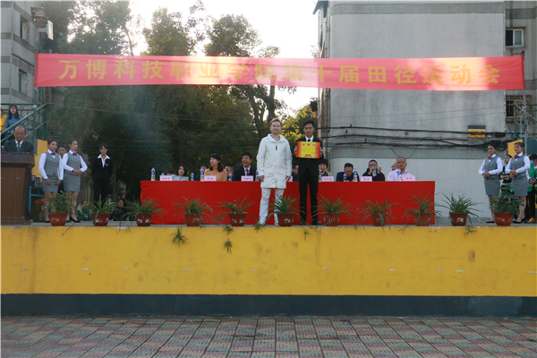 教育厅督导专员、院党委第一书记王宜为团体总分第一名颁奖