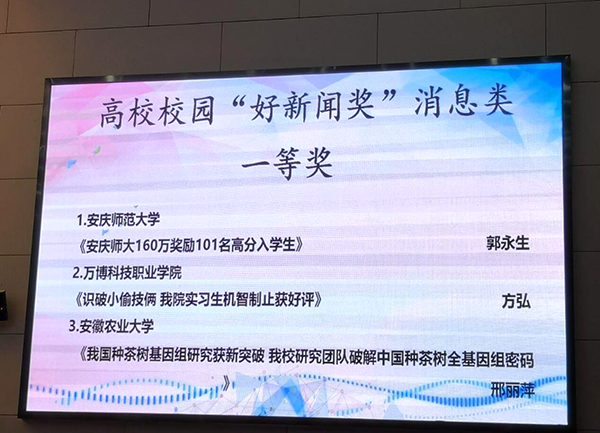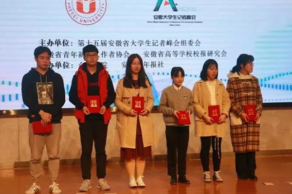 11月11日🏌🏼♂️,由安徽大学生记者峰会、安徽省青年新闻工作者协会和安徽省高等学校校报研究会联合主办,合肥学院、安徽青年报社联合承办的第十五届安徽省大学生记者峰会于合肥学院南艳湖校园隆重举行🧑🏿🎓🌶。应峰会组委会邀请📫,我院大学生记者团学生记者方弘👐🏽⚰️、傅斌、葛莹和张业琦四位同学参加此次峰会,我院方弘同学提交的新闻稿件荣获高校“好新闻奖”消息类一等奖的好成绩。