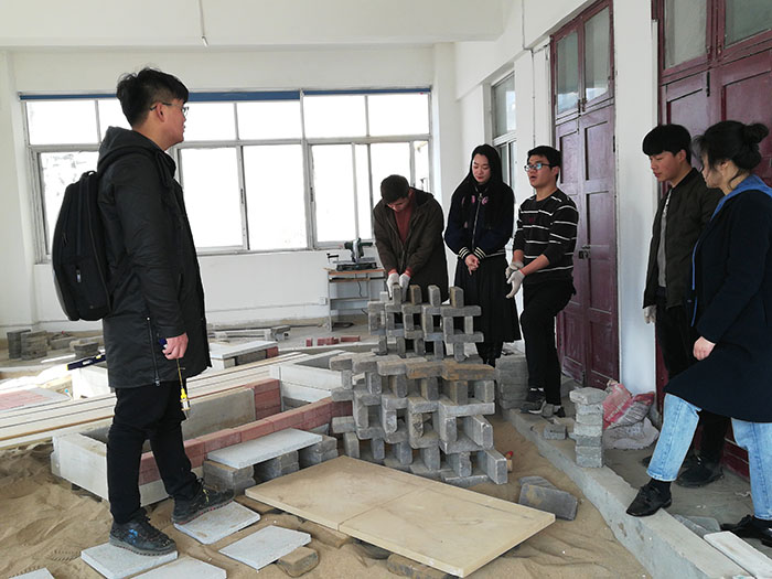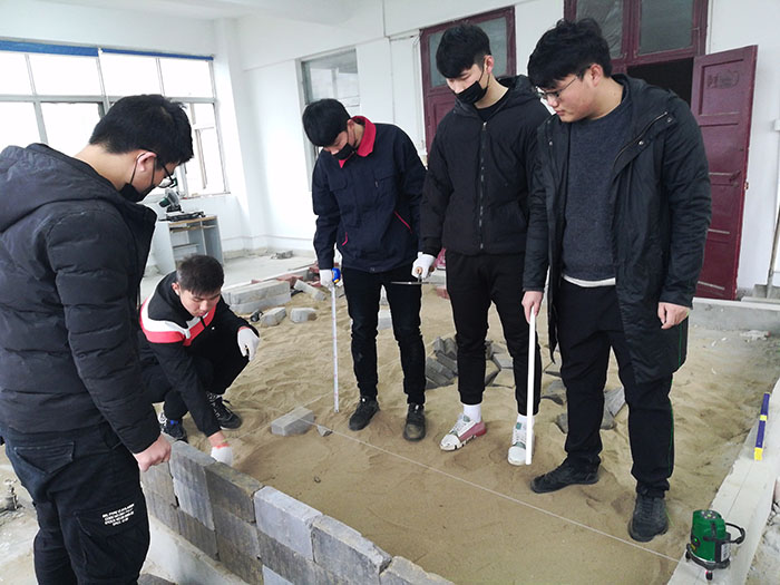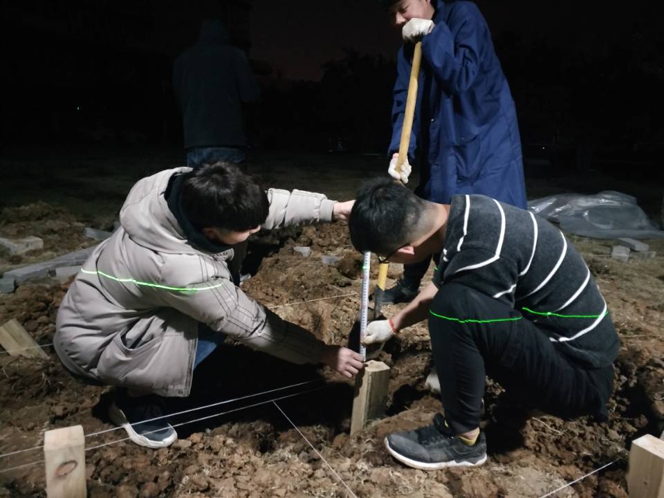 集训期间,参赛同学反复对接施工节点和施工难度及时调整方案,几位指导老师主动放弃休息,悉心指导。连续参加过2017年、2018年该项赛事的代小龙同学无私奉献🦶,在工作之余来校传经送宝,从放线定位、标高测量开始,一点一滴帮助他们积累参赛经验。