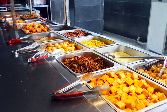 装修一新的学校食堂整洁明亮,一楼主营大众饭菜🤲🏻,包含教职窗口、韩国料理、特色面食、快餐小吃等;二楼为美食广场,包含南北菜系、特色炒菜、自助餐🕺🏼、麻辣烫等👳🏽,各具特色的八方美食,汇聚于此。