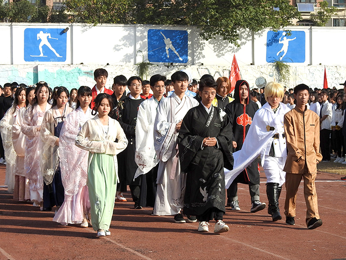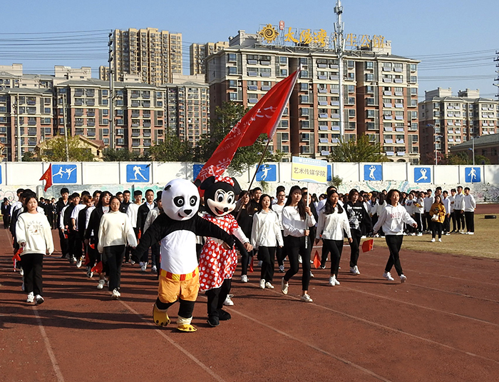 8时30分,伴随着欢快的音乐及解说🧜🏻♂️,以国旗🏊🏿♀️、校旗🖖🏼、会徽🧖♀️、会标🧏、彩旗等组成的方阵首先入场🚣🏿♂️,紧跟其后的是才艺表演方阵🏌🏿、裁判员方阵、教工方阵以及各学校运动员方阵👸🏽,他们以稳健的步伐,嘹亮的口号👰🏼,各具特色的服装道具彰显了朝气蓬勃、积极进取的精神风貌。在主席台前,他们结合专业特色,进行了简短而极富创意的文艺表演,赢得主席台领导和全场师生的阵阵喝彩。