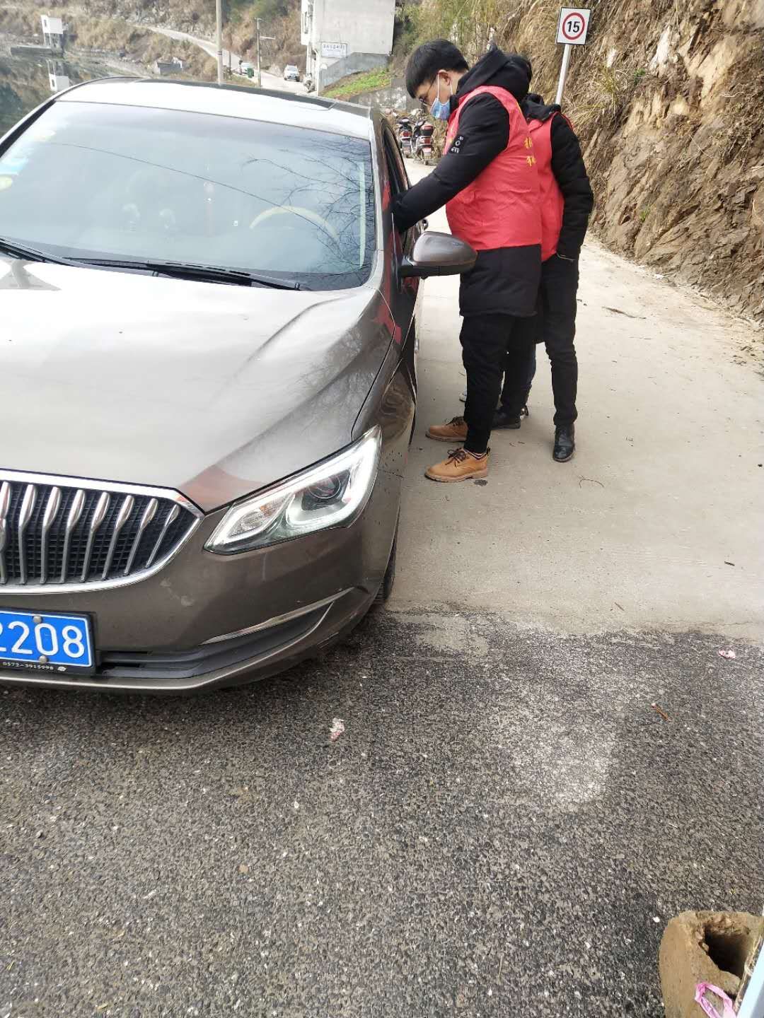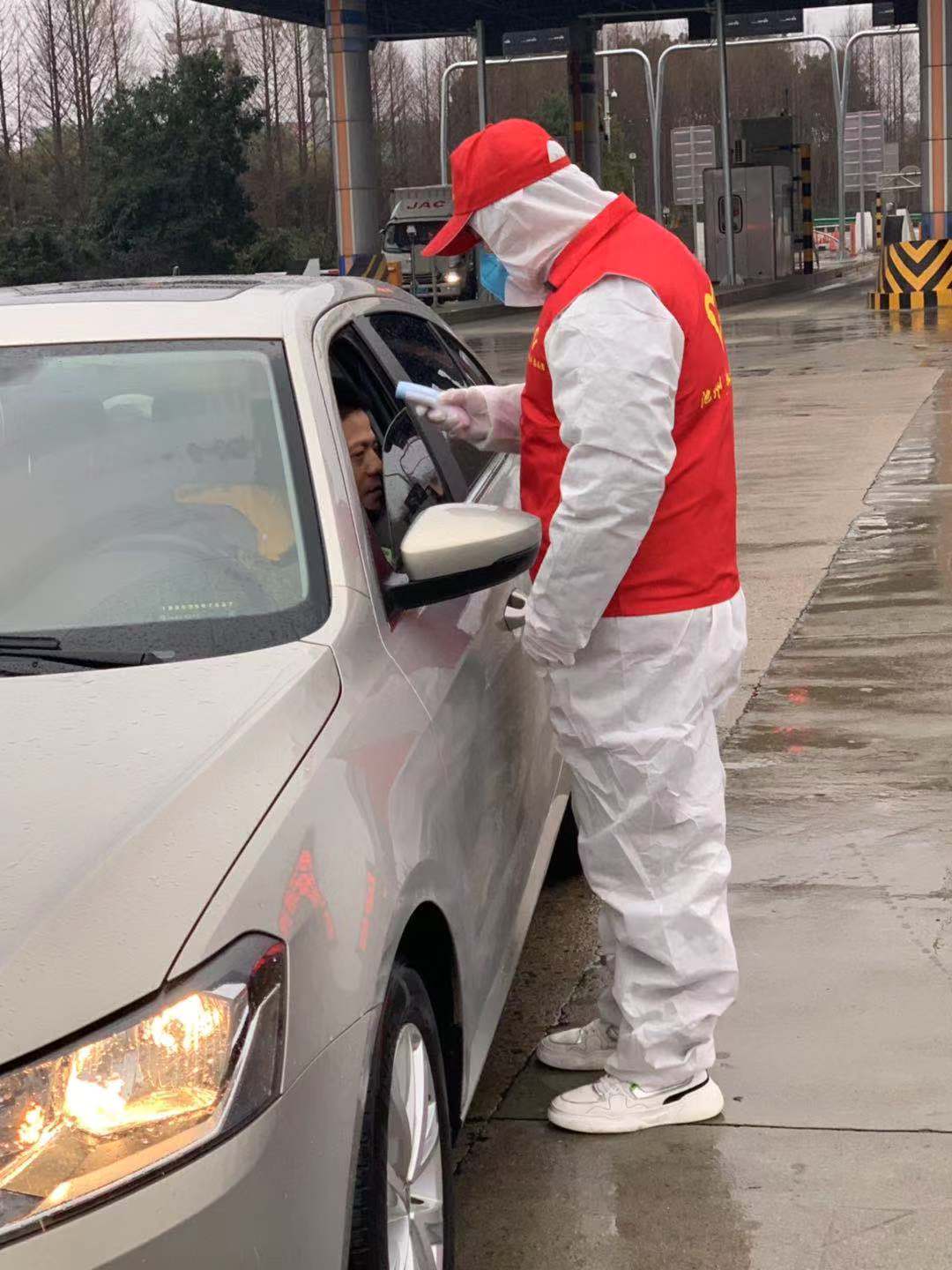 李政道同学和当地党员同志一起,在居委会路口设置检查站🌞,对进出人员进行体温测试