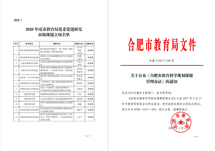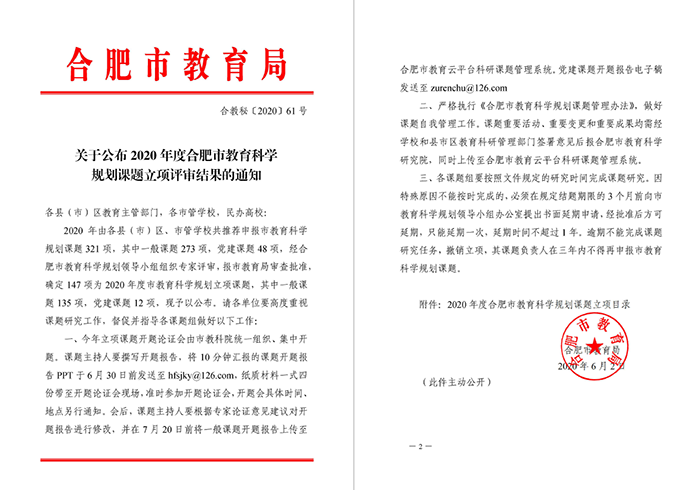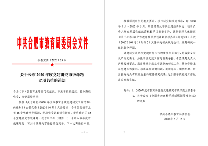 从2020年3月初,彩神党委工作部根据《关于印发<2020年全市教育系统党建研究工作思路>的通知》(合教党委〔2020〕10号)文件精神🙍🏽,积极动员学校8个党支部做好对党建研究课题的申报工作🍳。课题研究是学校党建研究工作的重要组成部分,是落实全面从严治党要求,加强学校党建工作的重要举措。