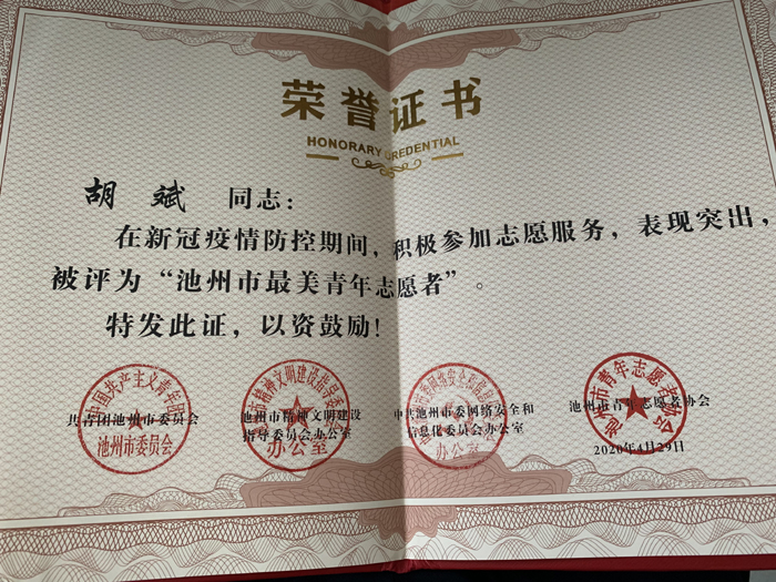 让我们把时间拉回到2020年2月🤷♂️,在疫情最为严峻、全国上下打响抗疫战役的时刻🧛🏿♀️,胡斌同学除了为湖北省慈善总会捐赠之外🔛,同样第一时间响应池州团市委的号召,在池州火车站(高铁站)和池州高速路口对过往车辆和行人进行体温测量,并协助进行车辆疏散及指引。犹记得当时,编者与胡斌同学之间有这样的对话: