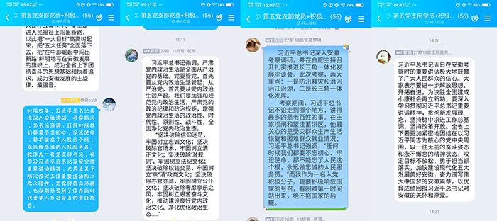 2020年8月18日至21日⚗️,习近平总书记亲临安徽视察,作出一系列重要指示,发表一系列重要讲话。教学第五党支部组织支部积极分子、党员开展线上学习讨论、交流学习心得,掀起学习贯彻习近平总书记视察安徽重要讲话精神的热潮。