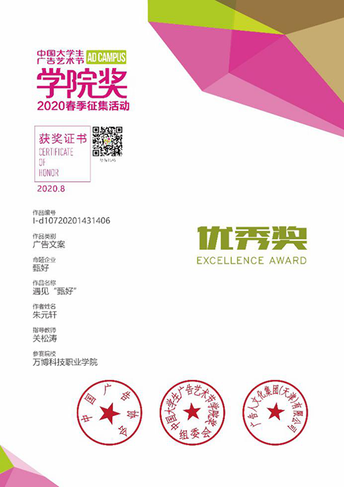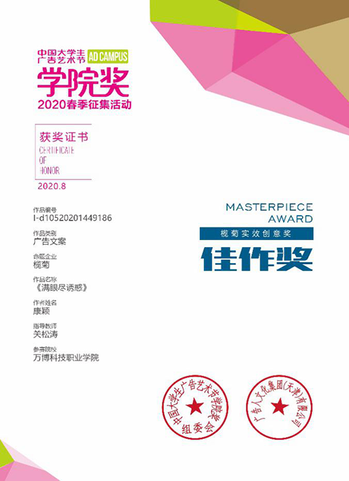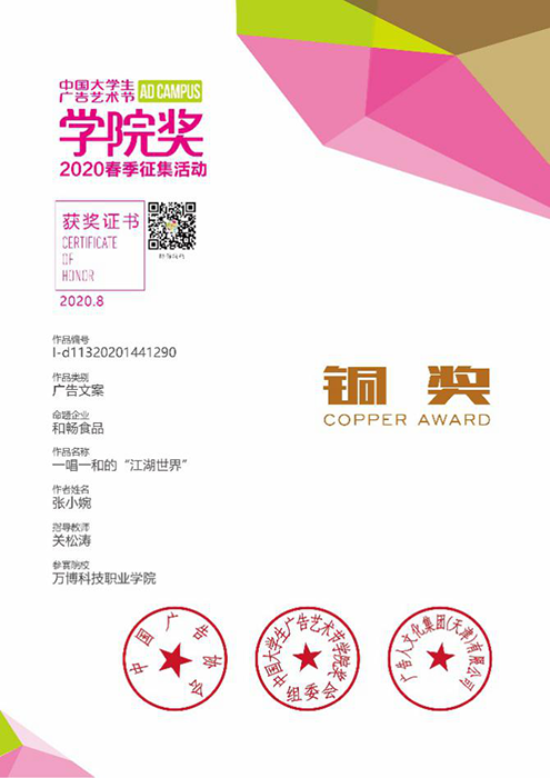 近日🍷,由中国广告协会主办、广告人文化集团承办、创意星球网全程执行的第18届中国大学生广告艺术节学院奖(2020春季赛)征集活动创意盛典在天津圆满落幕。赛事中,彩神艺术传媒学院广告传媒教研室学子们再次斩获佳绩👩💻,创下了彩神参加本赛事以来的“三最纪录”:参赛人数规模最大、获奖作品最多、奖项等级最高!