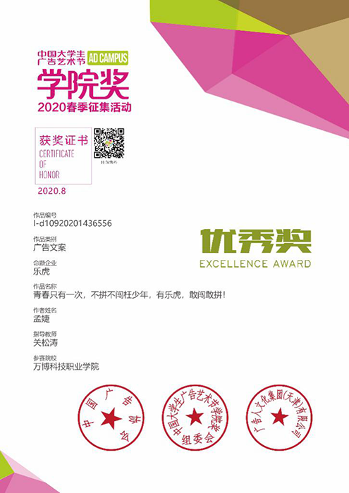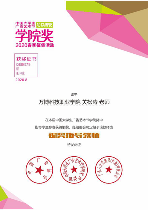 在广告传媒教研室全体教师的精心组织和指导下,17级🧛🏻♀️、18级和19级广告设计与制作专业全体学生共计90余人参加了本次赛事创作,共投递2200余件参赛作品,获得铜奖1项,优秀奖与入围奖149项,企业实效创意奖6项,获奖数量再创新高🤦🏼♀️。同时,彩神荣获本次赛事的“优秀组织院校”奖👐🫙,艺术传媒学院广告传媒教研室主任关松涛荣获本次赛事的“铜奖指导教师”奖𓀂,专职教师徐良霞荣获本次赛事的“优秀指导教师”奖🧖🏻♀️🤹🏻。