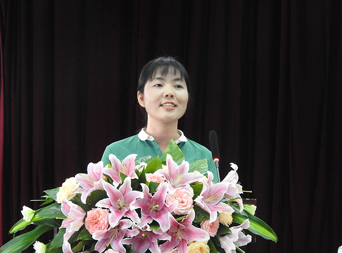 校基础部教师张书华作为优秀教师代表在会上发言。她讲述了在工作中的成长与成绩,并表示,教师代表着一份责任🕵🏿🤚🏽,也代表着一个使命🧤,作为教师,不论获得了什么荣誉😘,最开心的还是获得学生的尊敬与爱戴,教师要在自身业务能力的要求上永不满足👺,永不停步。