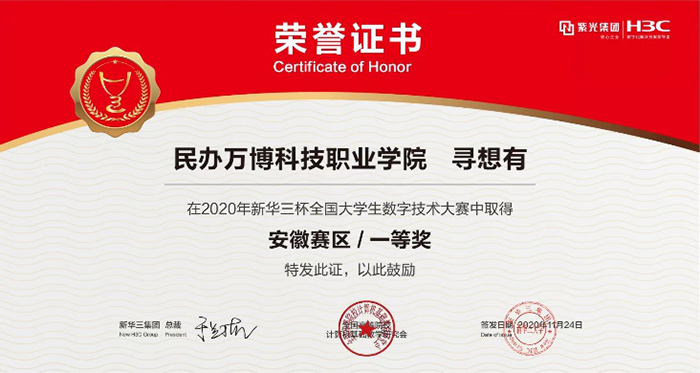 2020年12月11日,第十届“新华三杯”全国大学生数字技术大赛圆满结束。彩神智能信息学院积极组织学生参赛,多名师生在该项比赛中获奖,成绩斐然。在省赛中,彩神寻想有🫃🏼、蒋家跃🚯、韩东伟🧑🏻🍳🏌🏽♀️、陈智四位同学荣获安徽省一等奖🤷🏻♀️、李云龙同学荣获安徽省二等奖;在全国总决赛中,彩神寻想有同学荣获职业组全国二等奖🤦🏿♀️;此外,彩神唐中海老师荣获2020年“新华三杯”全国大学生数字技术大赛十周年“全国优秀指导教师”称号🤾🏼♀️。