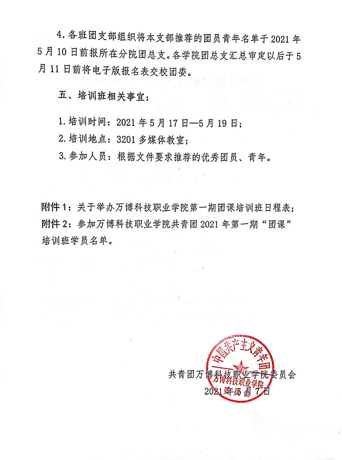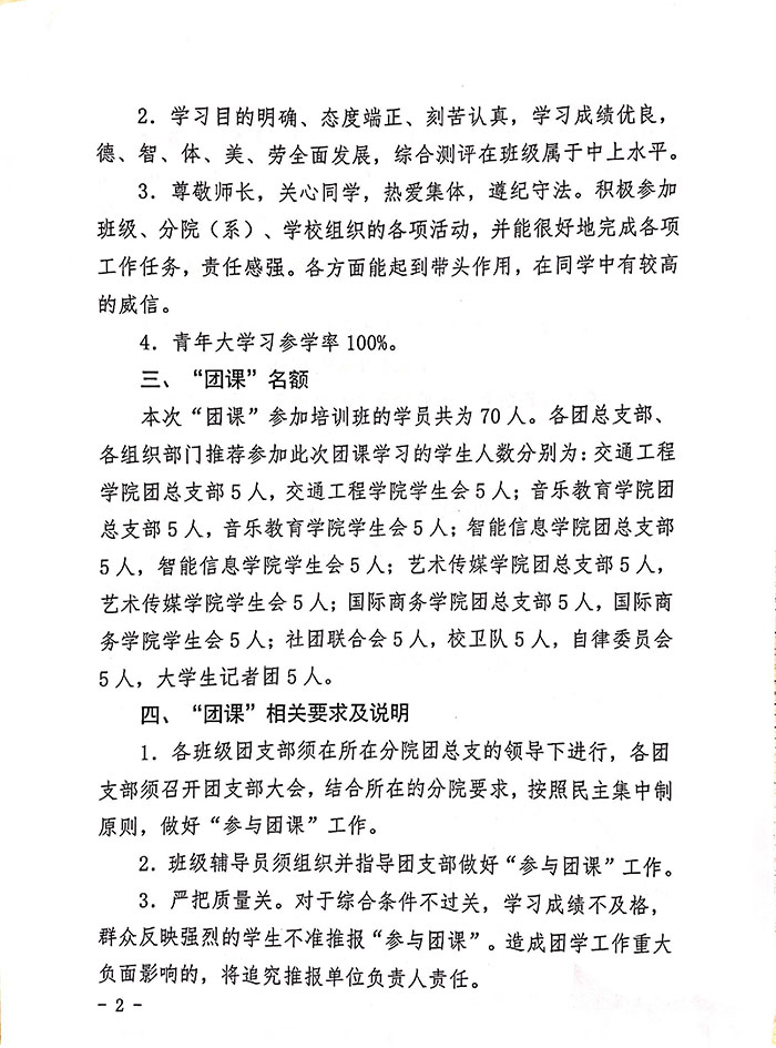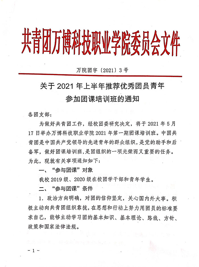 关于2021年上半年推荐优秀团员青年参加团课培训班的通知