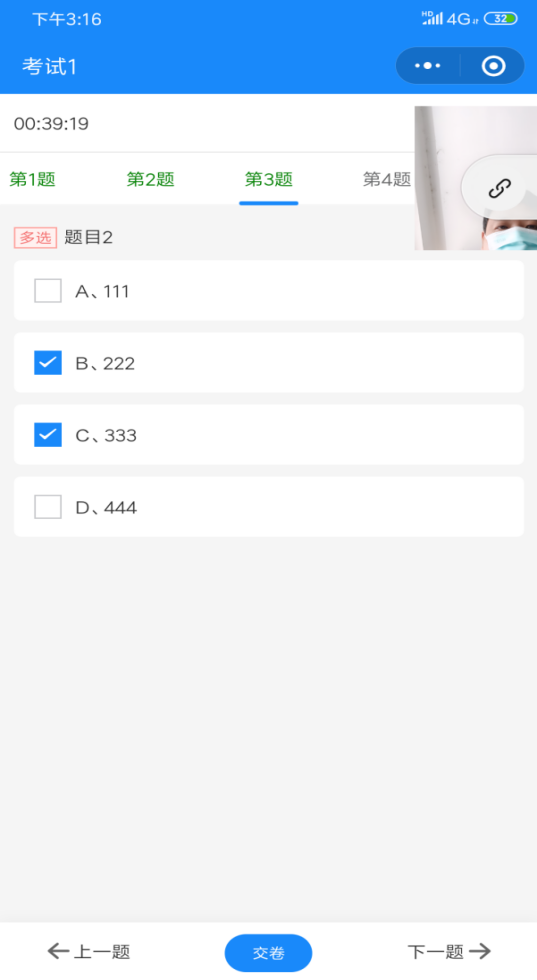 (2)在做题过程中如果视频框挡住了题目,可以移动视频框避开;
