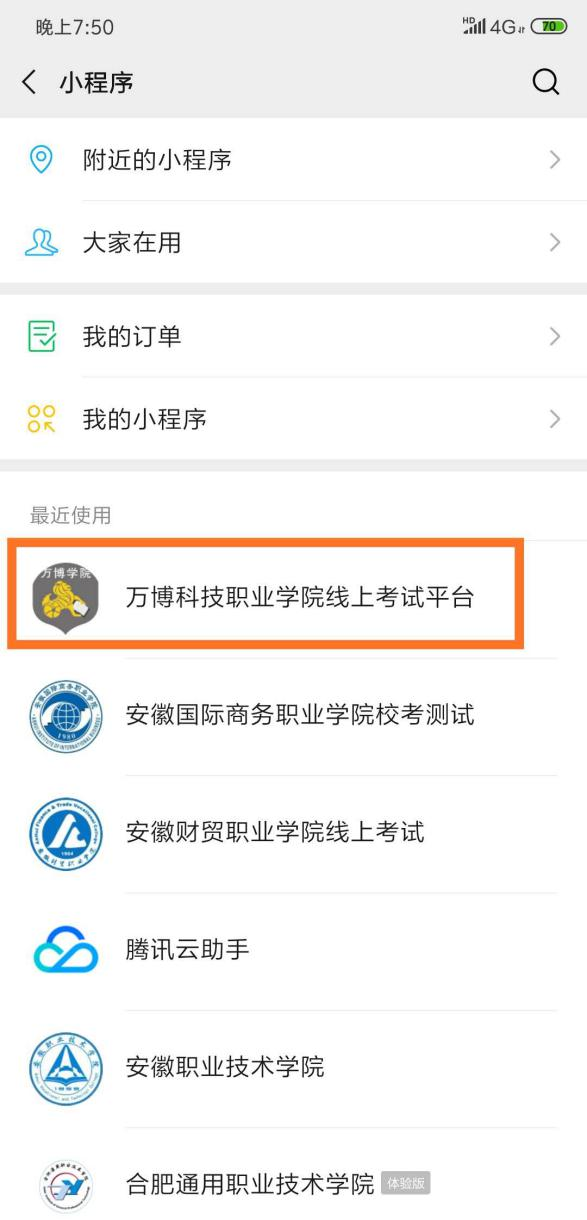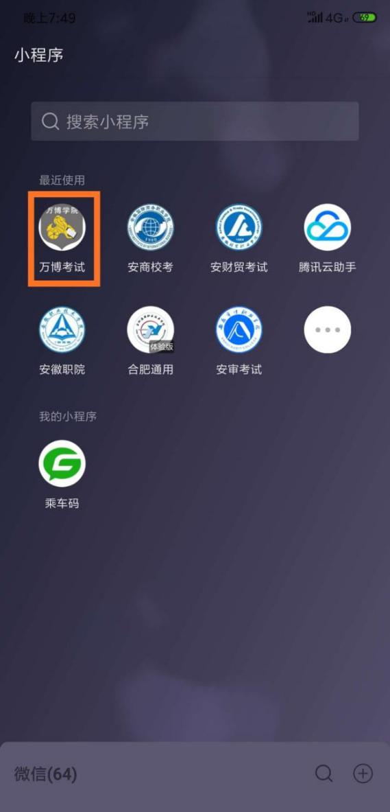 打开手机微信,在“微信”页面中下拉出现小程序查找页面或在“发现”页面的小程序菜单上👨👨👧👧,在搜索框中输入“彩神线上考试平台”进行查询,在查询结果中点击“彩神线上考试平台”小程序即可打开登录页面🤦♀️,或者直接使用微信扫一扫识别上方(长按显示识别)二维码进入小程序⁉️;