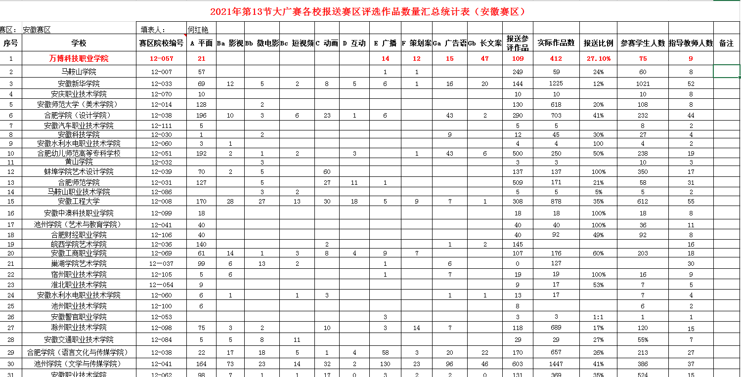 大广赛是迄今为止全国规模最大、覆盖高等院校最广🚶🏻➡️、参与师生人数最多、作品水准最高的全国性高校文科大赛。本届大广赛安徽省赛由安徽省教育厅主办。省内96所院校2万多人参赛,收到参赛作品16227组。评选不区分本科、高职组,通过分组初评👩🏼🏫、终评、集体合议终评等环节🔊,评选出安徽赛区获奖作品🙅🏿♂️。