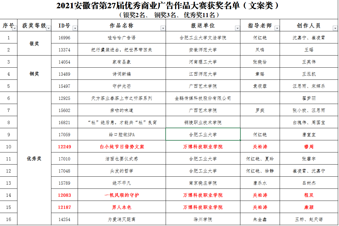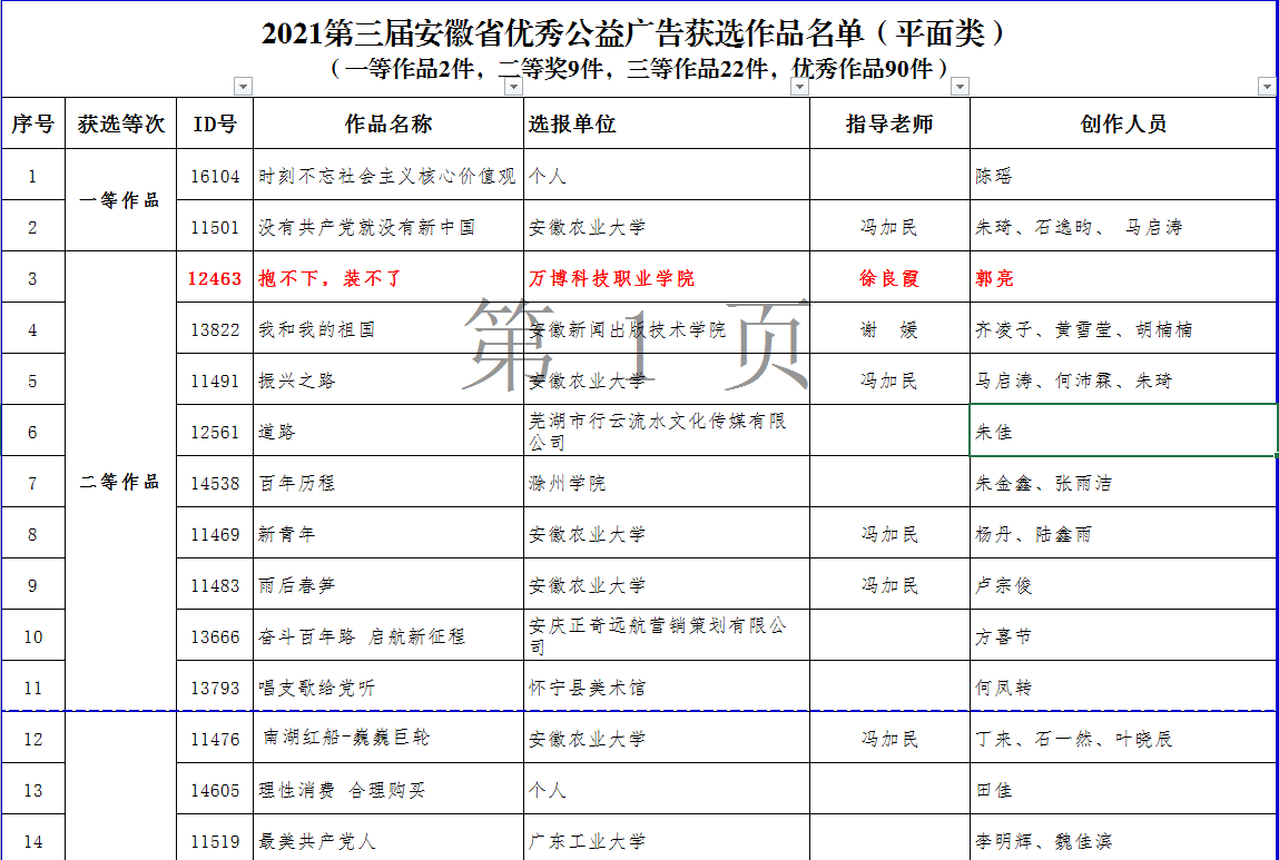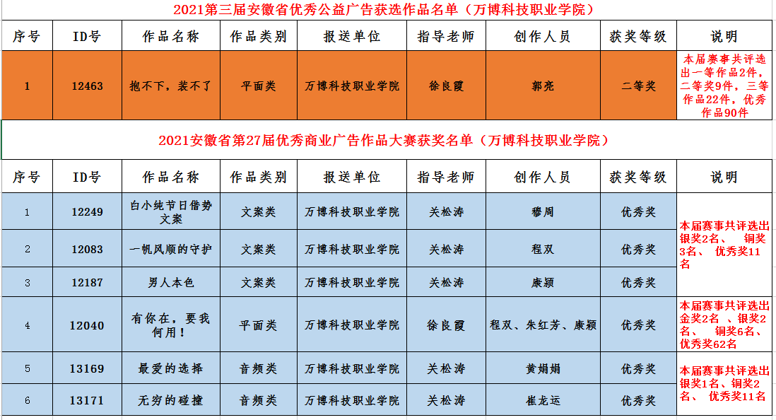 为深入宣传贯彻习近平新时代中国特色社会主义思想,提升安徽商业广告的创意设计水平👩🏼🏫,激发广告行业活力,促进广告人才培养🛟🪚,进一步树立安徽广告品牌形象,在安徽省市场监督管理局的指导下🧑🏼⚕️,安徽省广告协会举办2021年安徽省第27届优秀商业广告作品大赛🥻😤。彩神积极组织2019级广告班和2020级广告班的全体学生进行了实践教学训练和专题创作⛎,在本届赛事平面类、音频类和文案类三个参赛类别中共获优秀奖6项。