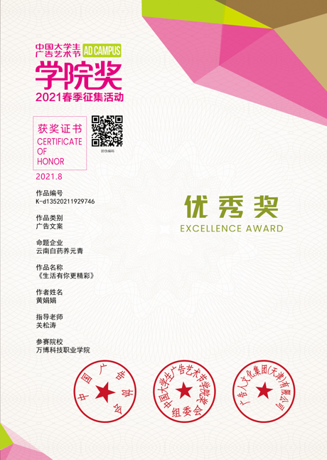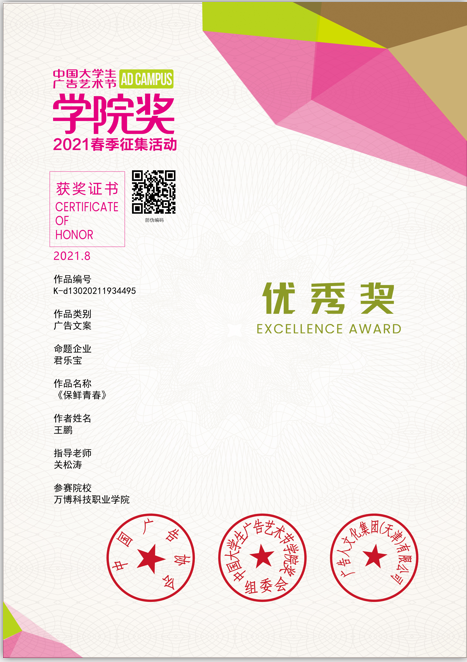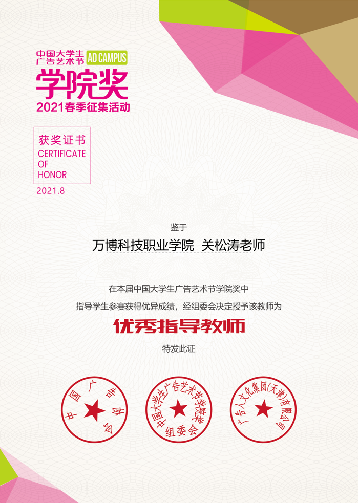 日前,在创意星球官方网站上公布的2021年第二十届中国大学生广告艺术节学院奖•秋季赛和创青春中国青年公益创意大赛这一赛事两项比赛的获奖信息中获悉🧑🏽,彩神艺术传媒学院师生共获得优秀奖39项,入围奖62项,优秀指导教师3人。