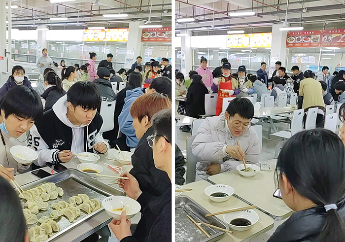学校食堂的阿姨叔叔们也是一直忙碌着,摆饺子,蒸饺子,将一屉屉新出笼的饺子送到师生手中🐈。看着一盘盘别出心裁但都裹着爱意的饺子,师生们坐下来享受着付出的收获🪦,现场处处都是一张张喜悦的幸福的笑脸。