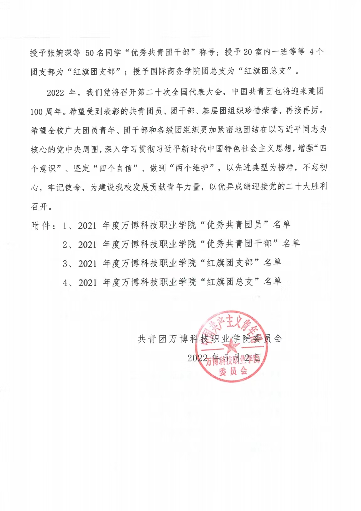关于表彰2021年度“优秀共青团员”“优秀共青团干部”“红旗团支部”“红旗团总支”的决定
