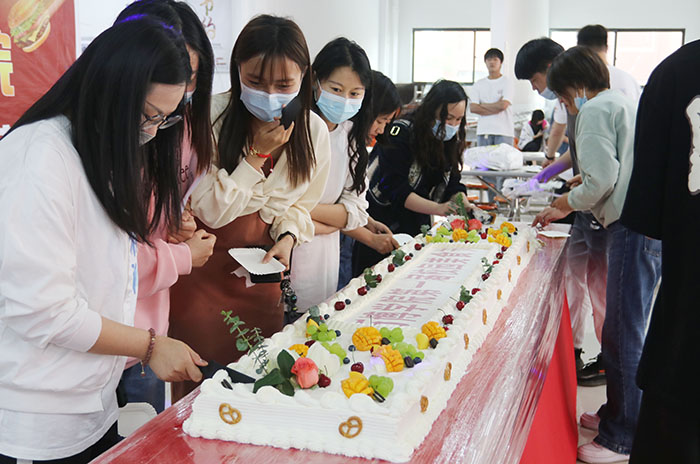 美食节活动在校领导许华云和煜泉餐饮负责人汪令共同切开蛋糕的那一刻拉开了帷幕。烹饪现场热火朝天,“麻辣小龙虾、柠檬鸡爪、地锅鸡➰、酸菜鱼……”一道道美食让人垂涎欲滴;糕点师傅们现场制作蛋糕甜点🐑,“超长的蛋糕⬆️、精致的甜品👩🏽🍳、鲜美的水果……”让“美食家们”驻足流连🕢,早早地将美食餐桌围得严严实实。活动期间还设置了抽奖环节🩰🧝🏻♀️,让大家在品尝美食的过程中还能感受到惊喜和快乐,参加抽奖的学生早早的排起了长队📚👳🏼,整个活动现场热情高涨🚶♂️,琳琅满目的美食让师生们齿颊留香、回味无穷🔣。