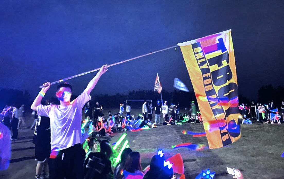 在这个特殊的夜晚🎹,TFBOYS应援旗随风飘荡👩🏼🦳,同学们不约而同齐聚操场🏋🏽♂️,自觉席地而坐围成一圈,与TFBOYS相聚在一起👛,怀念属于我们共同的青春记忆。