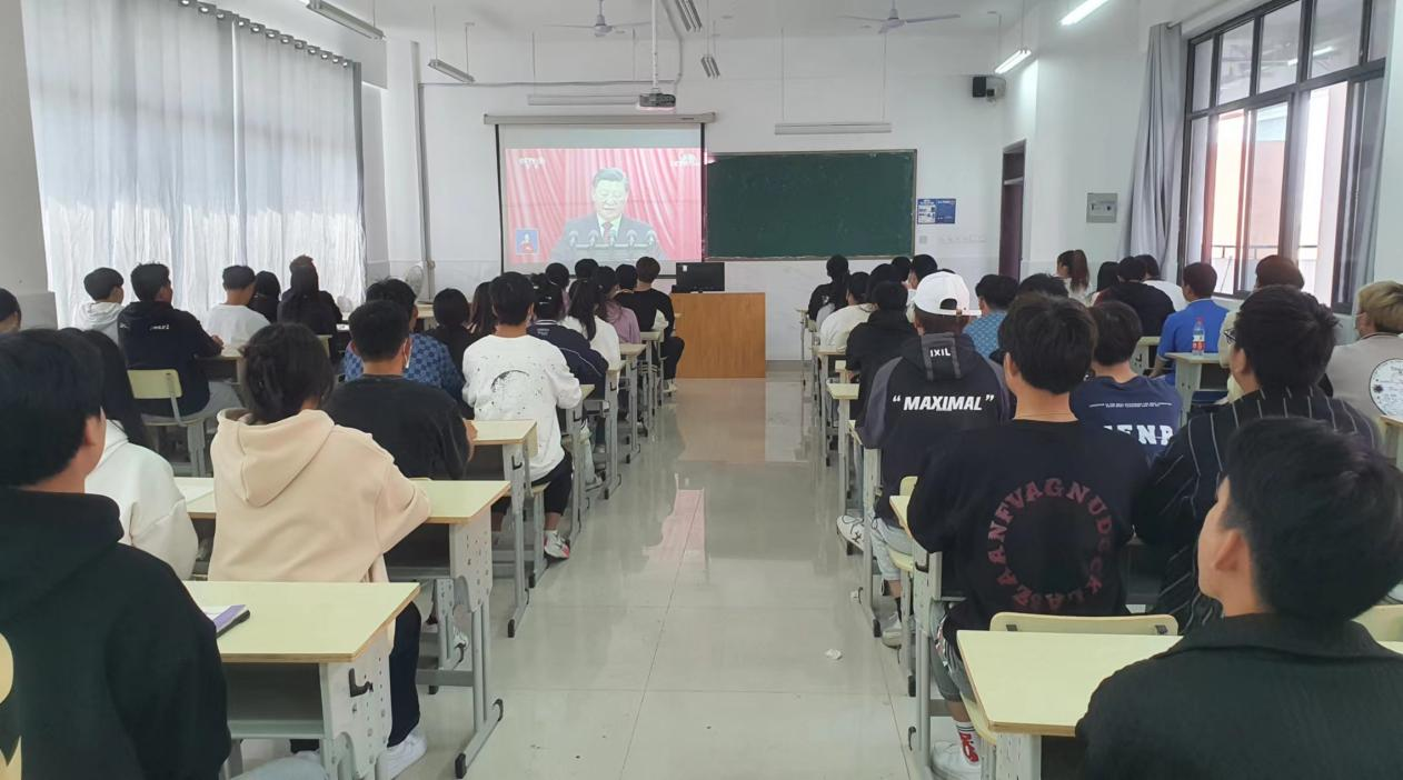国际商务学院党支部于10月16日上午10点🧖🏻,在2401教室组织学院党员🧑🏿🎤、团干👩🏽🍳、学干、班干以及青年学生采用集中和分散结合的方式,共计约300人共同观看党的二十大开幕会直播。大会开始,全体起立🧄,奏唱国歌,在党支部书记司斌斌的带领下👱🏻♂️,同学们精神饱满高唱国歌。而后🛀🏼🟧,全体师生怀着崇敬的心情为已故老一辈无产阶级革命家和革命先烈默哀🕛。