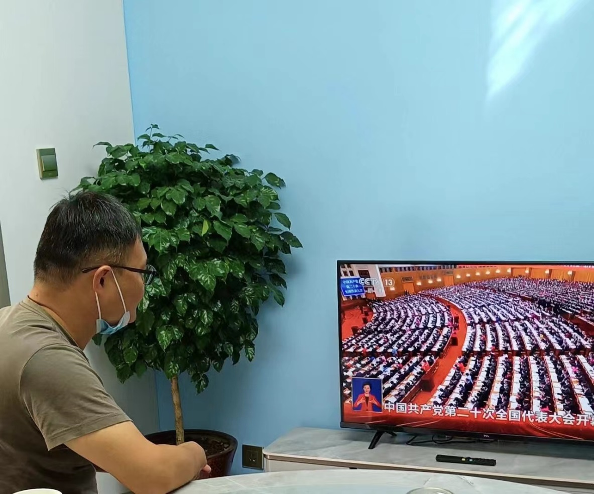 在观看会议期间,同学们都以认真的态度,昂首挺胸,全神贯注地聆听着习近平总书记在党的二十大开幕会上的报告,有同学拿出手机拍摄,也有不少同学认真写下笔记。
