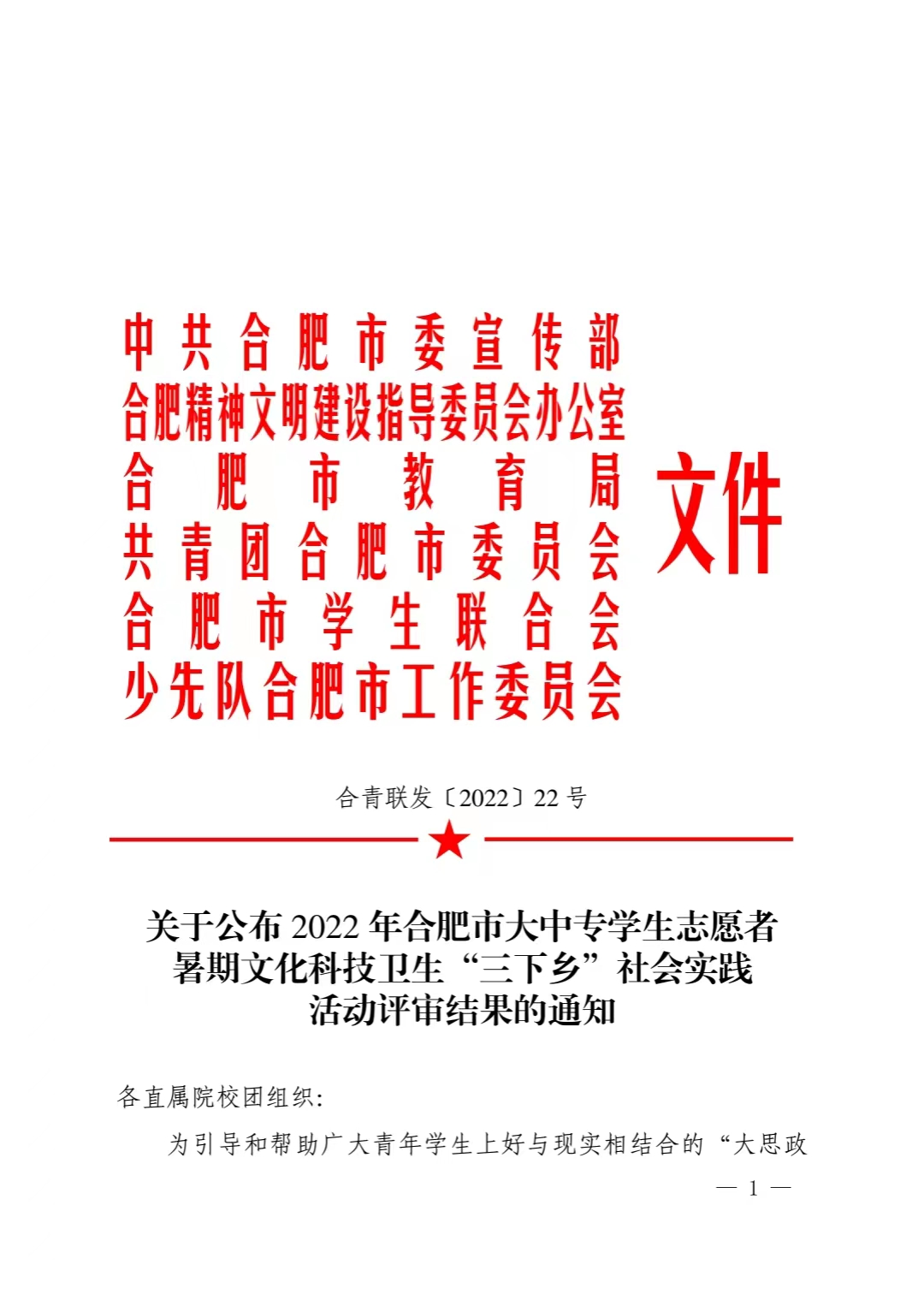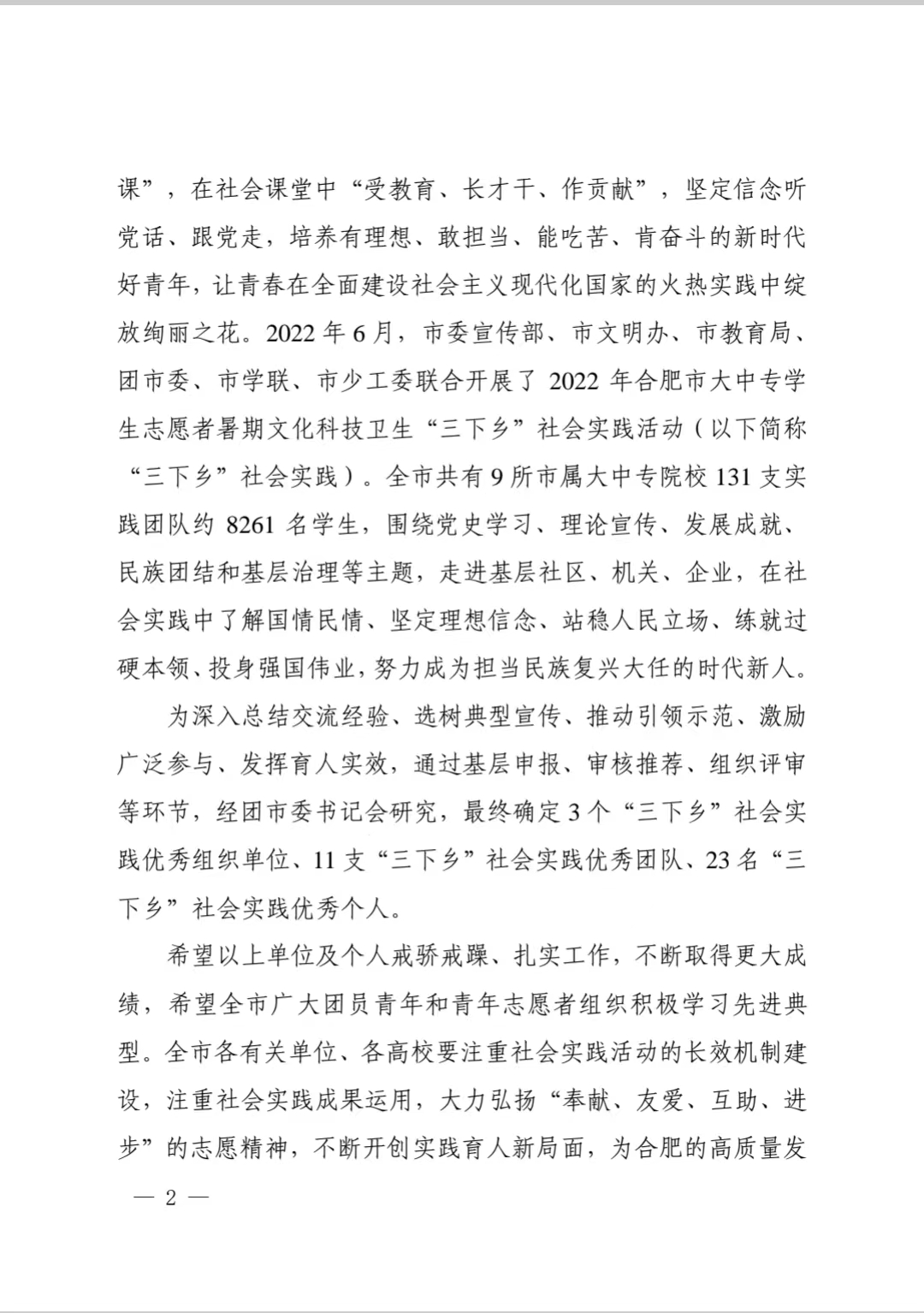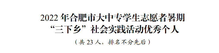 日前,团市委通报表彰了2022年合肥市大中专学生志愿者文化科技卫生“三下乡”社会实践先进集体和个人💟。彩神智能信息学院杜继梧同学荣获市“三下乡”社会实践活动“优秀个人”荣誉称号。