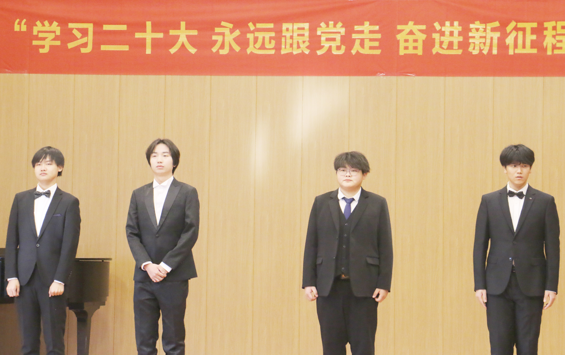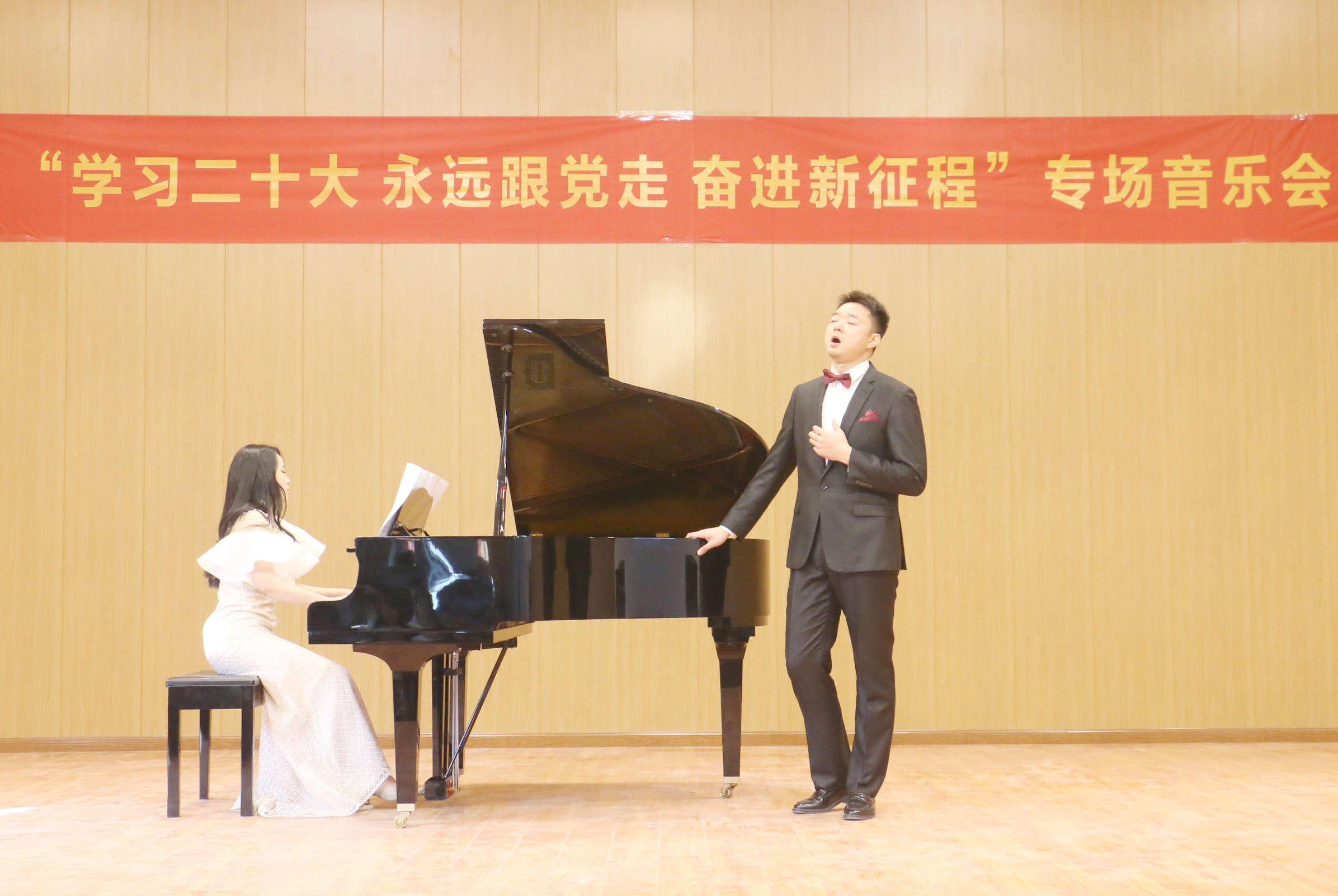 本场音乐会,音乐表演专业的部分青年教师纷纷登台献艺🙎♂️,师生同台,在用歌声👩🚀、琴声表达了对祖国繁荣昌盛的赞颂的同时🥘,也充分展现了音乐教育学院师生昂扬向上的青春风貌,进一步坚定了师生坚持专业理想😎👱🏻♀️,坚持理论与舞台艺术实践相结合,知行合一,保持强烈的求知欲、敏锐的洞察力和旺盛的创造力,探求新知🥨、追求真理,用实际行动践行党的二十大精神🚣🏽,在实现中华民族伟大复兴的时代洪流中踔厉奋发,贡献自己的青春力量。
