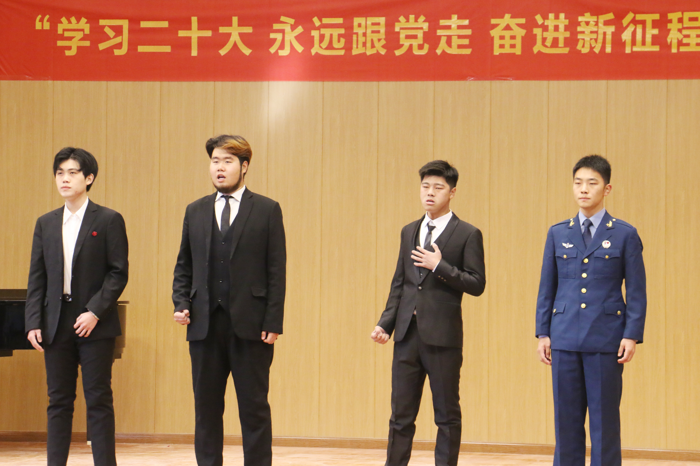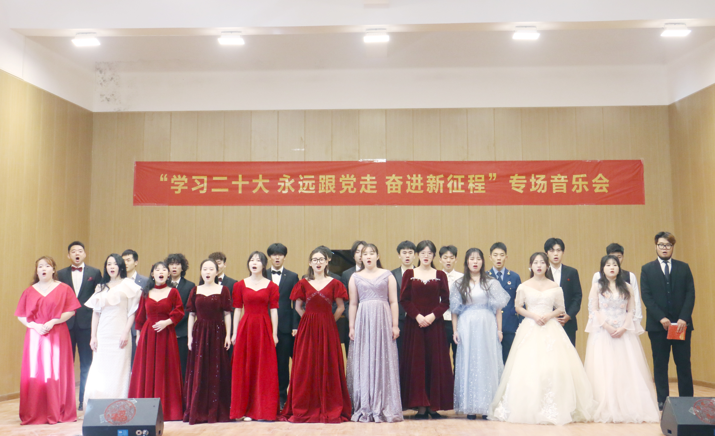 音乐会节目形式多样👐🏼,内容丰富。男声独唱《海恋》、《你是我的一切》、男声合唱《向往》、《把一切献给党》🛅、女生独唱《青玉案·元夕》、《越走路越宽》🥶、《帕米尔👨🏫,我的家乡多么美》🚡🐪、女声合唱《万疆》🥷🏽,表演声情并茂;笙独奏《地道战》💇♂️🕵🏼♂️、钢琴独奏《百鸟朝凤》🚿,器乐演奏优美动听🫵🧗🏿,精彩纷呈的节目为观众们上演了一场精彩的视听盛宴🚴🏼♂️。音乐会在大合唱《唱支山歌给党听》的歌声中圆满落下帷幕。