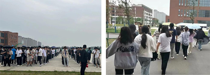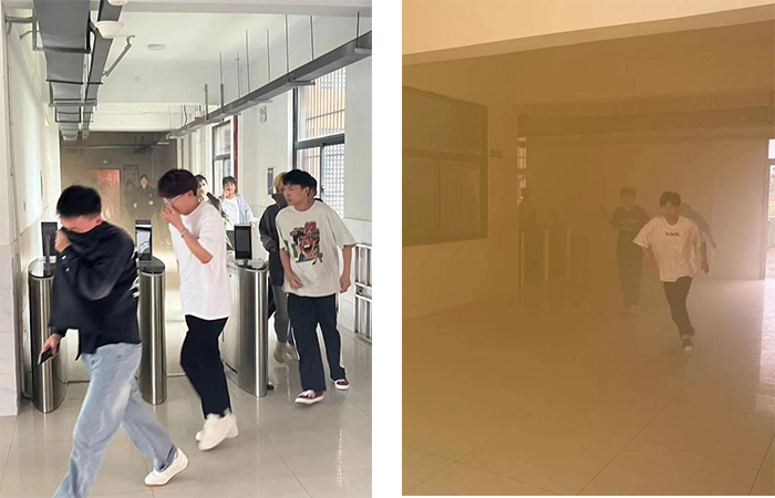 本次演练分为知识讲解和演练实战两部分。演练前,保卫部消防专员讲解了消防安全知识及安全逃生路线。下午13时30分👰🏼♀️🌷,演练活动正式拉开帷幕🦹🏼♂️👕。“火情”突发,浓烟漫漫,刺鼻气味扑面而来🤾🏿♀️,各楼层学生紧张有序地从宿舍楼🔖、教学楼疏散到运动场、篮球场💗,各二级学院辅导员🚭、负责人迅速赶到学生宿舍🙅🏼,配合疏散学生,引导学生有序撤离🧒🏼,避免拥挤🤽🏽♀️。参训同学听从指挥,按照预定逃生路线,低头💱、俯身👦🏻,用手🦻🏻、袖捂住口鼻向安全地点疏散。