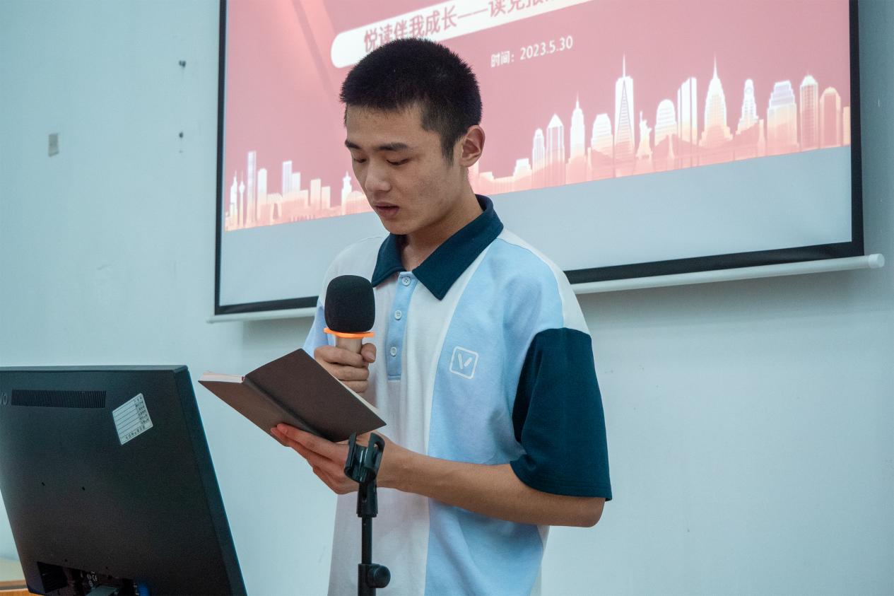 活动分别由校团委委员许鑫宇领读《光明日报》学习贯彻习近平新时代中国特色社会主义思想专刊《全过程人民民主的显著优势和世界意义》🪈,校学生会陈阳领读《在高质量发展中满足人民的美好生活需要》👨👧👦,引导与会青年团员就党报文章内容进行交流讨论。